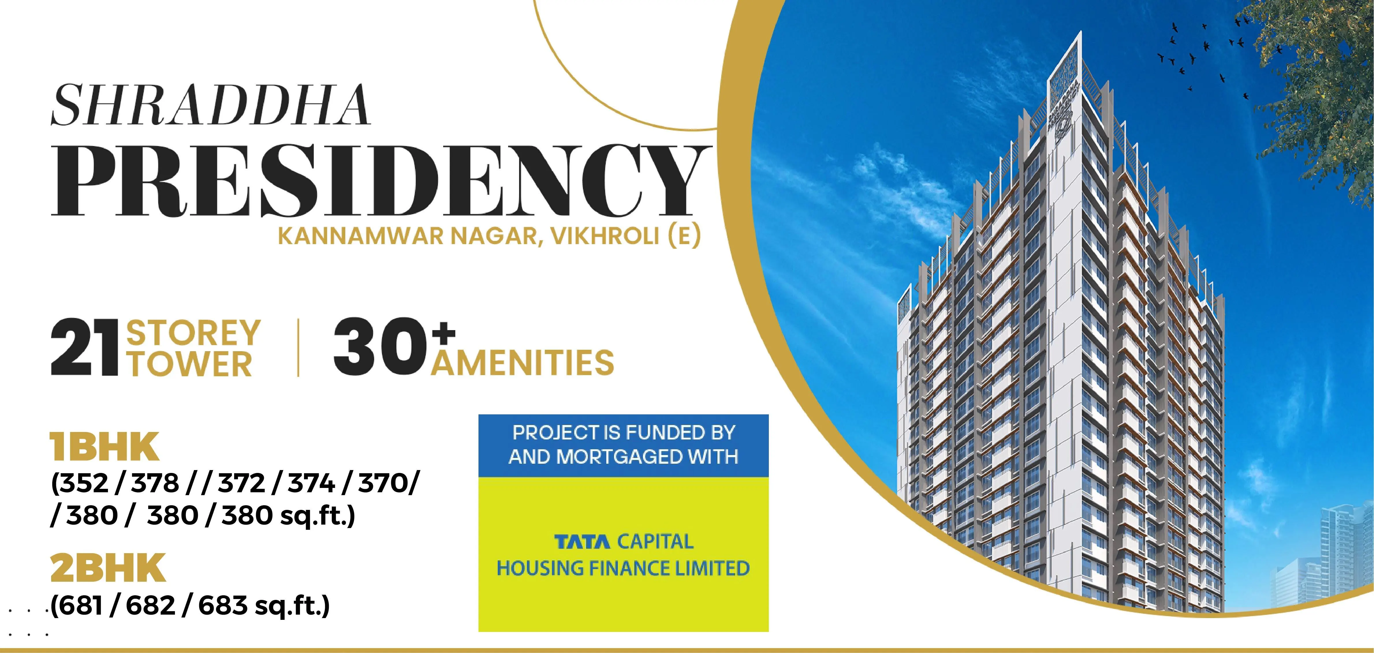 Welcome to Shraddha Presidency, an exceptional 21 storeyed tower pioneered by Shraddha Landmark, a name that constructs value and has successfully delivered more than 5000 families a happy home. Discover the vibrant and thriving neighbourhood of Vikhroli where luxury living meets unparalleled convenience with a whopping 30+ amenities. Whether you're seeking cosy 1bhk flats in Vikhrolior spacious 2bhk flats in Vikhroli, reach out to Shraddha Presidency, one of the best projects in Vikhroli Eastthatoffers a plethora of residential options that cater to your selective tastes and preferences. Embrace a lifestyle defined by modern amenities, impeccable design, and a prime location that ensures easy connectivity to all parts of the city. Let's dive into our flats in Vikhroli like no other, where your dream of owning a luxury flat becomes a reality.